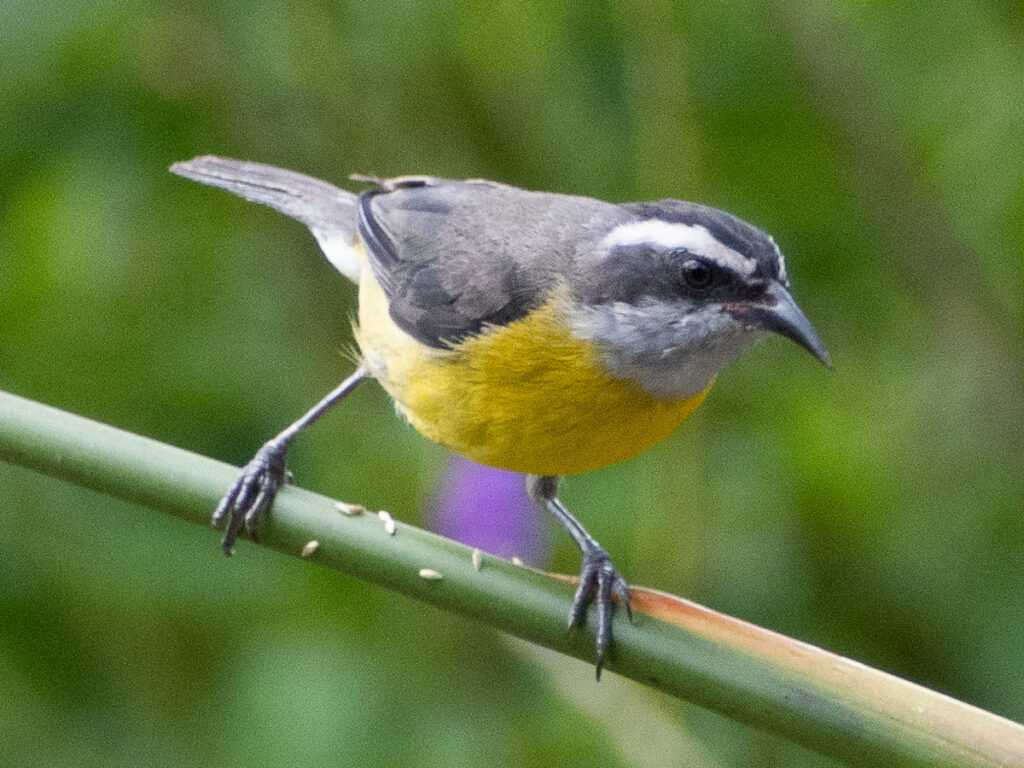 Like hummingbirds the Bananaquit is a nectar feeder and will readily come to a sugar water feeder. Notice the similar colouring to the Kiskadee and many other species in São Paulo. The Bananaquit is very small and easily identifiable with its markings and movements around open flowers.