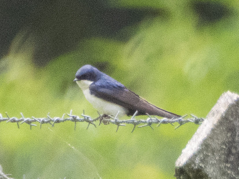 Key features: small blue-backed swallow, white underparts, often low over open areas.
