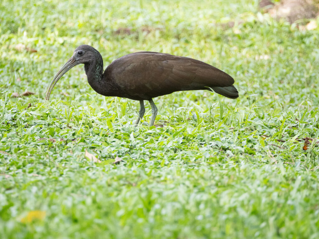 Key features: dark ibis with subtle green sheen, long curved bill.