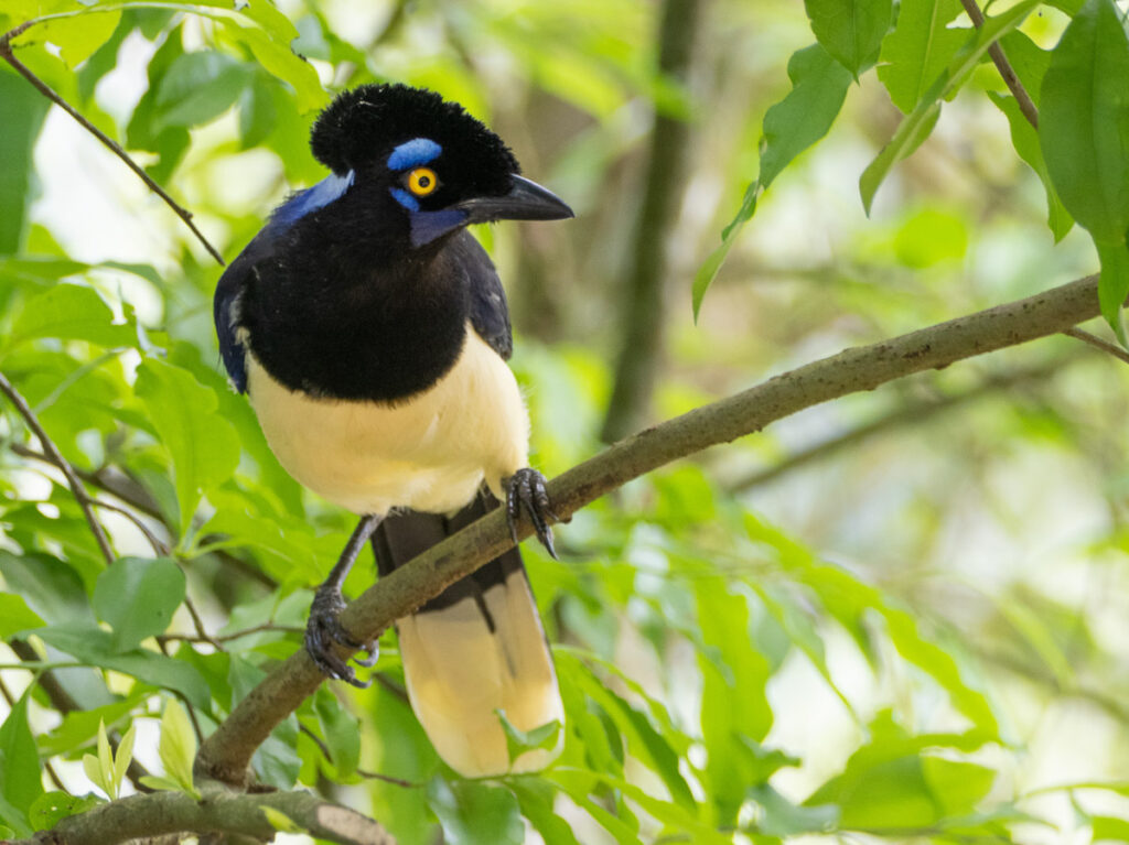 Key features: large blue-and-black jay, prominent crest, bold and inquisitive behaviour.