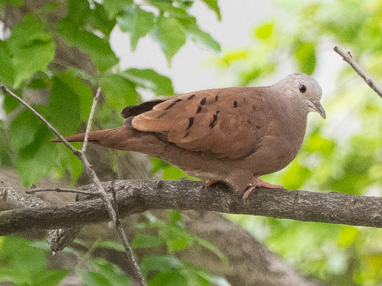 Now on to the pigeons and doves. The Ruddy Ground Dove is the smallest of the common pigeons and doves that you are likely to see in São Paulo and is easily missed. They fly surprisingly quickly and can be furtive. The key identifiers are the small size and brown colour with some grey on the head. Listen out for their pulsing, evenly paced call.