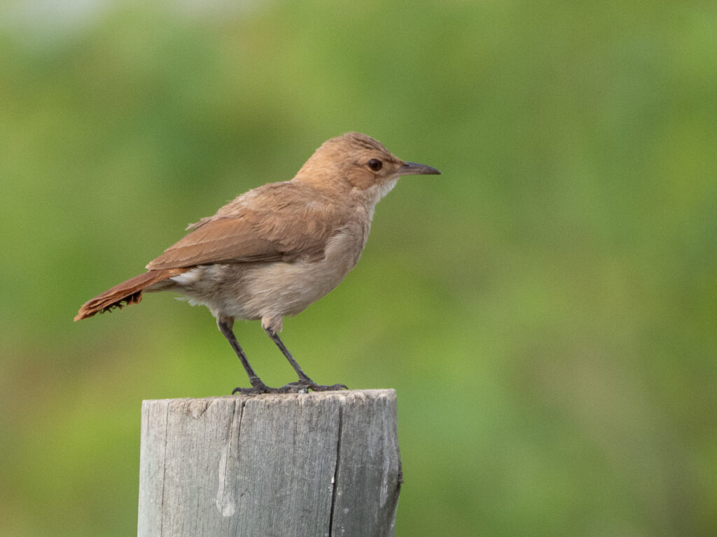 Key features: plain rufous-brown bird, often walks on the ground, famous mud “oven” nest.